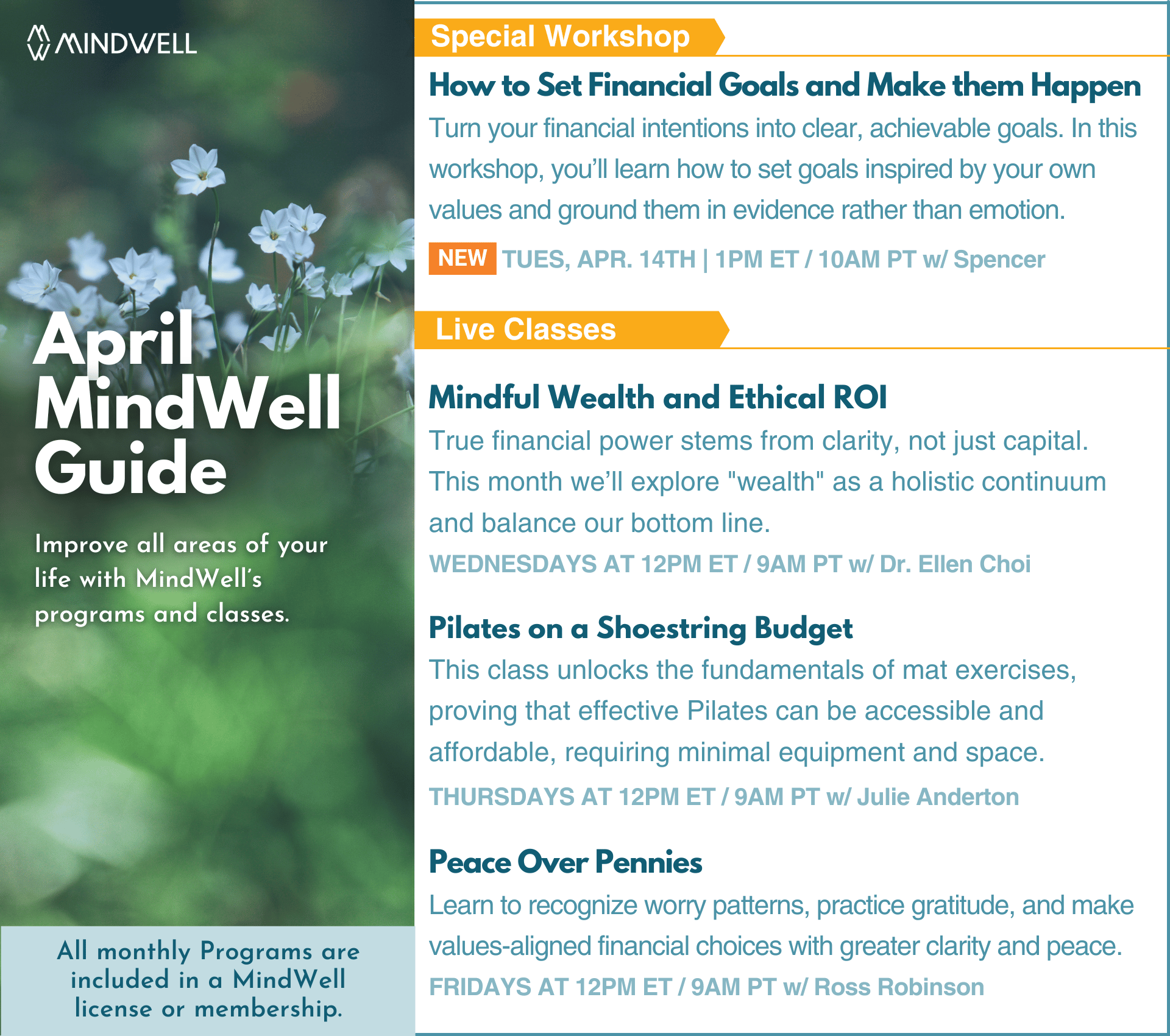 To support practical well-being and healthier money mindsets, MindWell is offering a series of sessions designed to help participants reduce stress related to money and translate financial intentions into achievable steps.