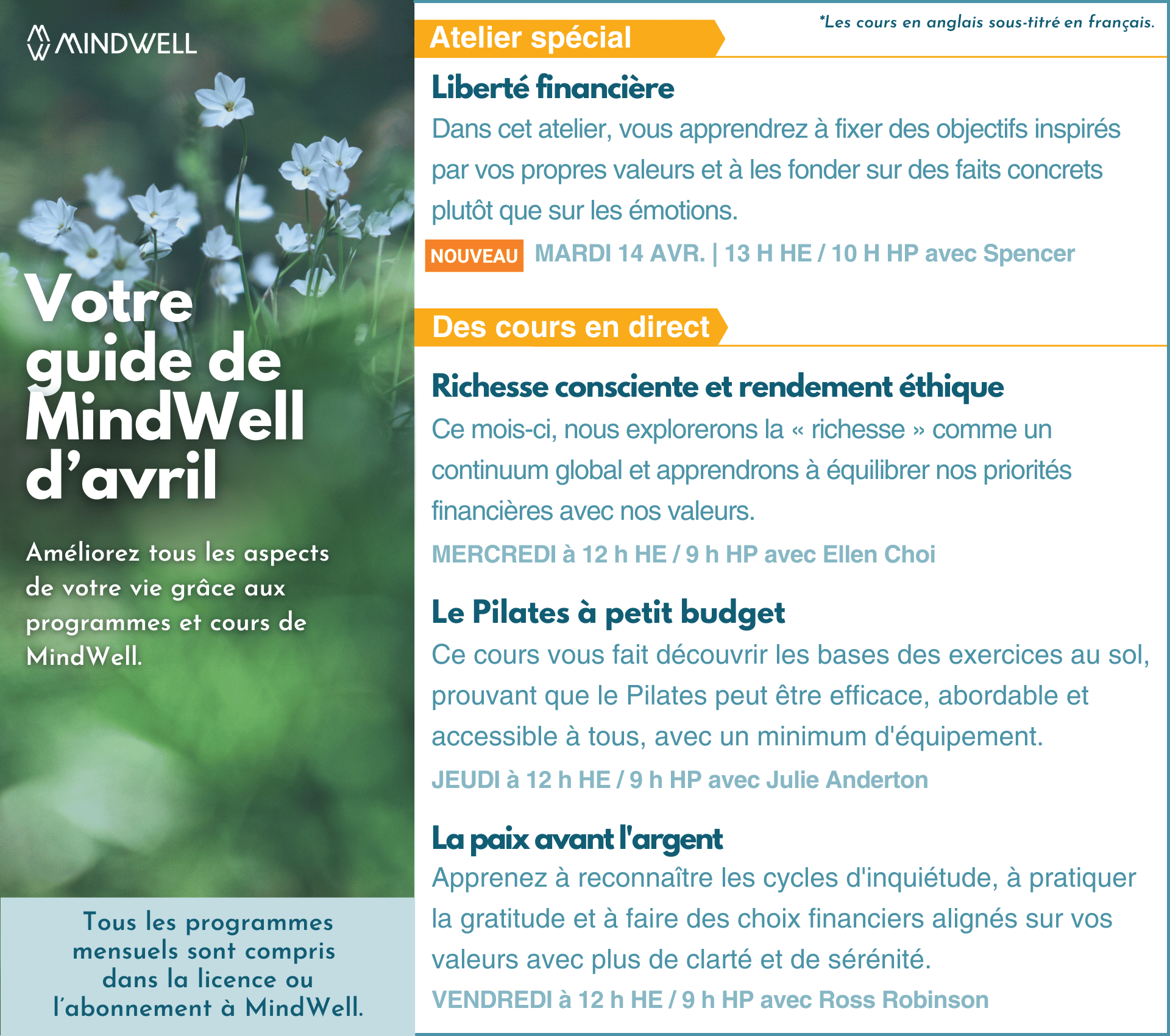 *Remember: Live subtitles on all live classes ensure accessibility for both English and French speakers.